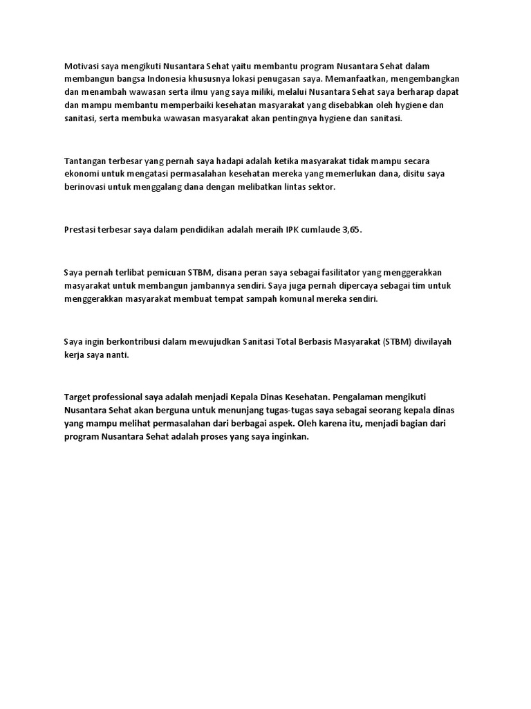 Apa motivasi anda menjadi nusantara sehat 1. Ad Grammarly Evaluates Your Papers To Eliminate Grammar Spelling Errors. Poin yang mesti kamu terangkan adalah.